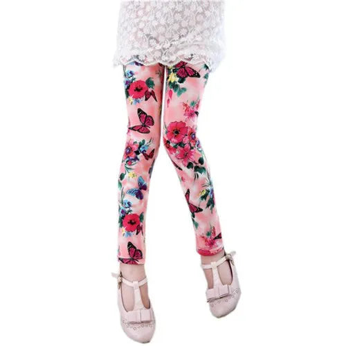 Kids Girls Leggings Spring Summer Flower Printed