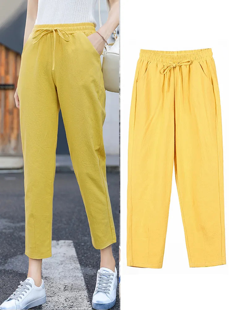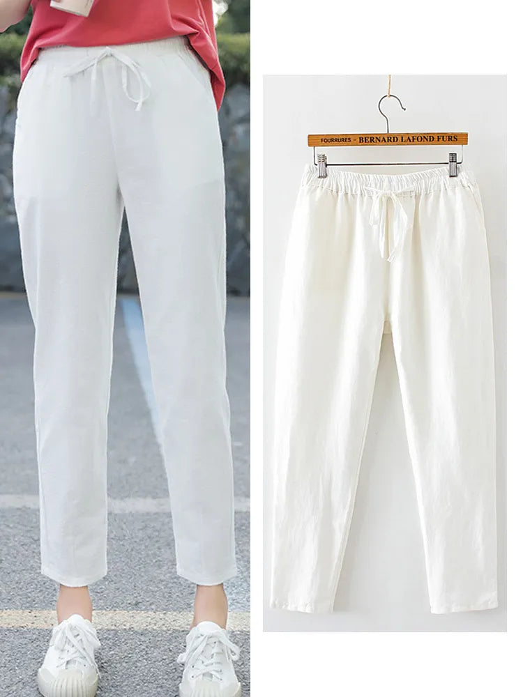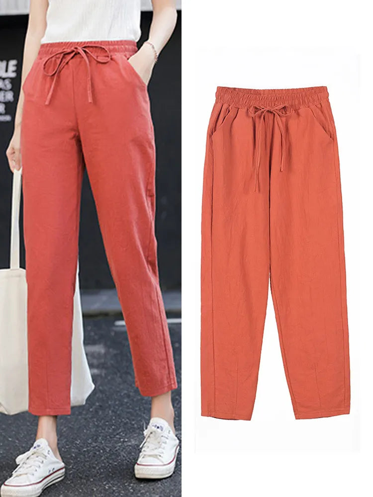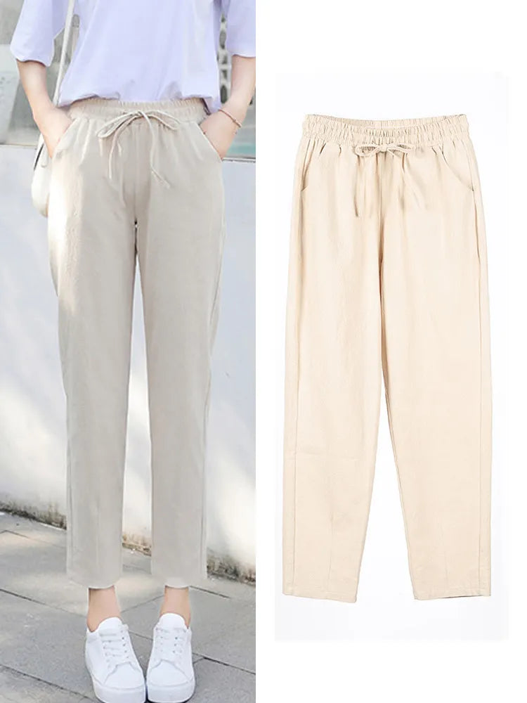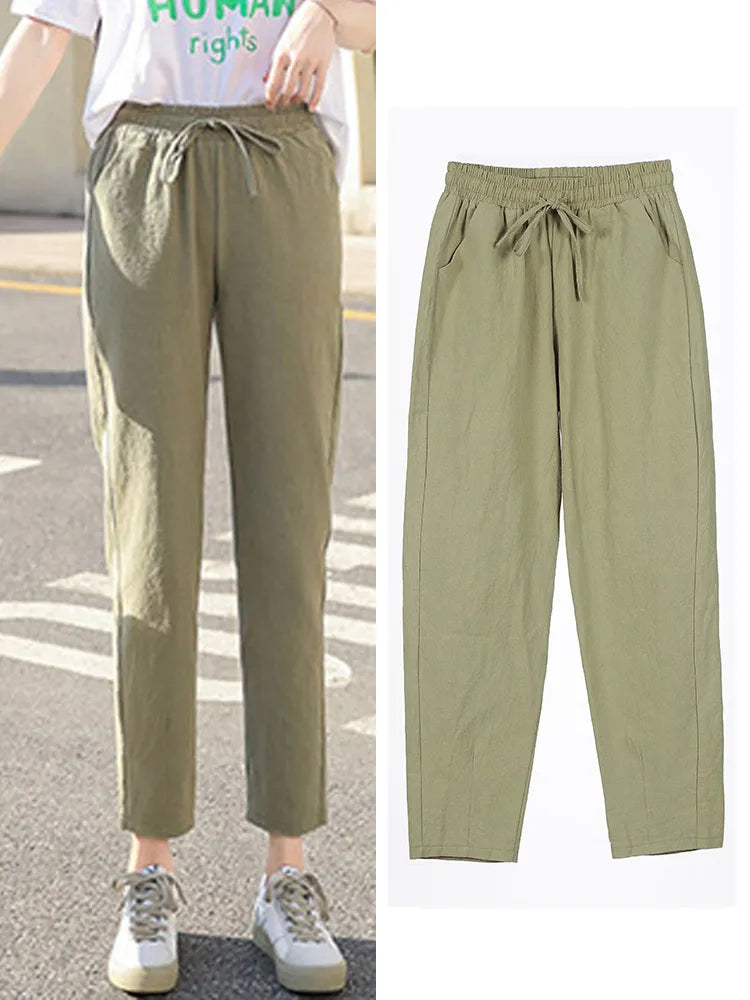Womens Spring Summer Pants Cotton S-XXL
