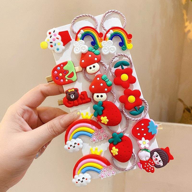 Inform when this item available 14PCS Girls Sweet Hair Clip Rainbow Fruit Cute Cartoon Hair Accessories